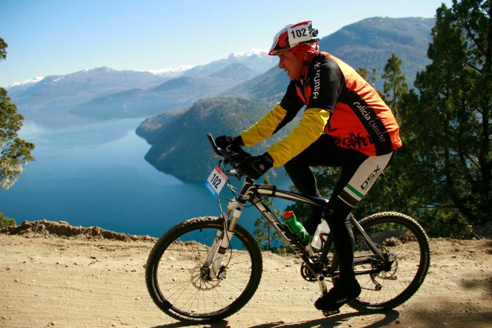 O Tetratlon é uma competição muito tradicional em San Martin de los Andes, por todo o percurso tem muitos espectadores que torcem “Bamo, Bamo!” o tempo todo. Incentivo extra, não só para seguir, como também para continuar sorrindo. Final da bike em frente do lago Lácar. Com 56 km rodados e média de 21,8 estava pronta para entrar na água.