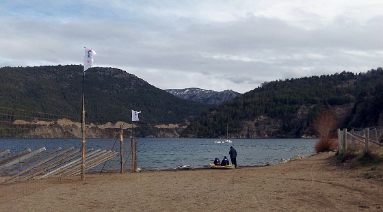 Ontem fui testar o caiaque para ver se estava alinhado para a prova, estava um vento e um frio que por um momento eu pensei em desencanar, mas depois que entrei na água fiquei feliz por ter completado uma etapa do processo. A perna de remo da prova terá 10 k no lago Lácar.