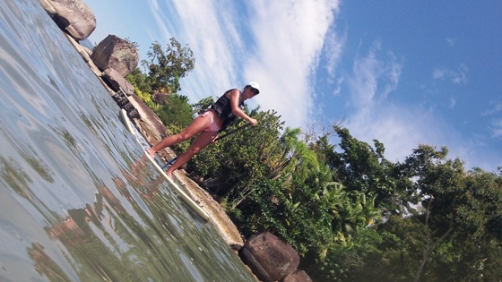 da prancha de stand up, da exploração das pedras na costeira, de remar com golfinhos,