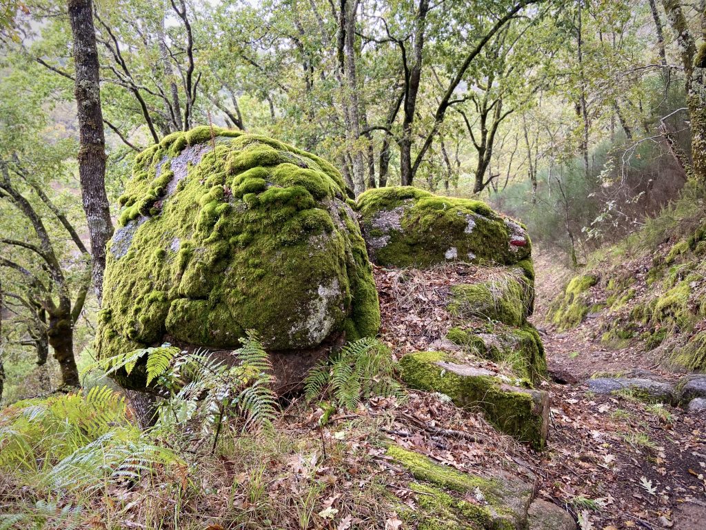 Nessa época do ano, começo de outono, os musgos estão mais verdes e decoram com exuberância muros e pedras do caminho. Minha cabeça, que ainda não saiu do mountain bike, analisa a trilha:”Hum! aqui eu passava de bike!”