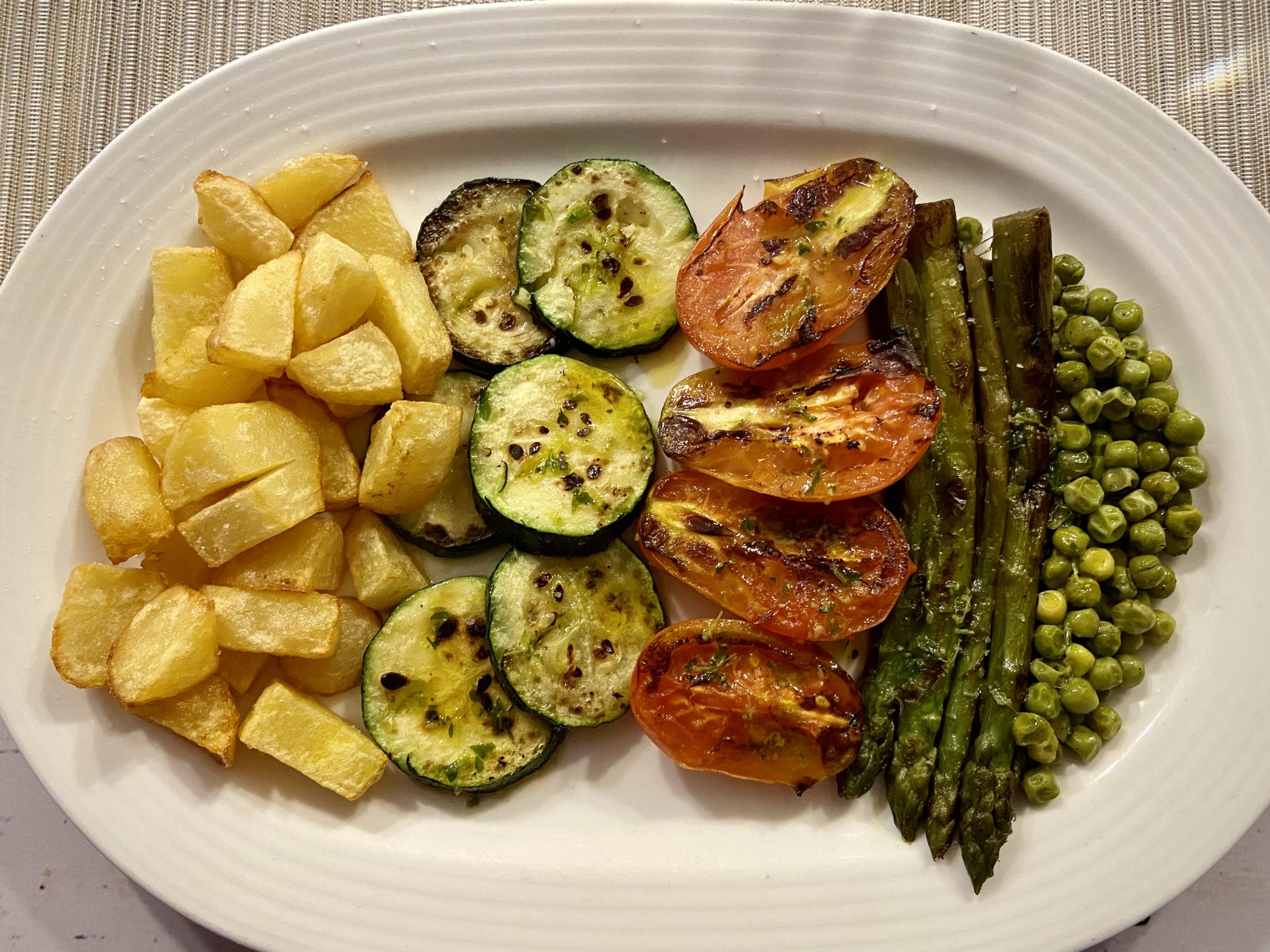Depois dos oito km de trilha chegamos a Lobios, na hora do almoço. A parada foi no restaurante Lusitano. Os pratos do dia todos tinham carne, eu pedi apenas o acompanhamento de um deles. Ao perceber que eu não comia carne, o senhor do restaurante delicadamente montou um prato especial para mim. Estava tão fotogênico quanto saboroso. Que delicia!