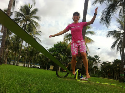 Eu nunca tinha feito uma aula de slackline, apenas me aventurado na brincadeira sem muita técnica, sem equilíbrio. Sem sucesso.