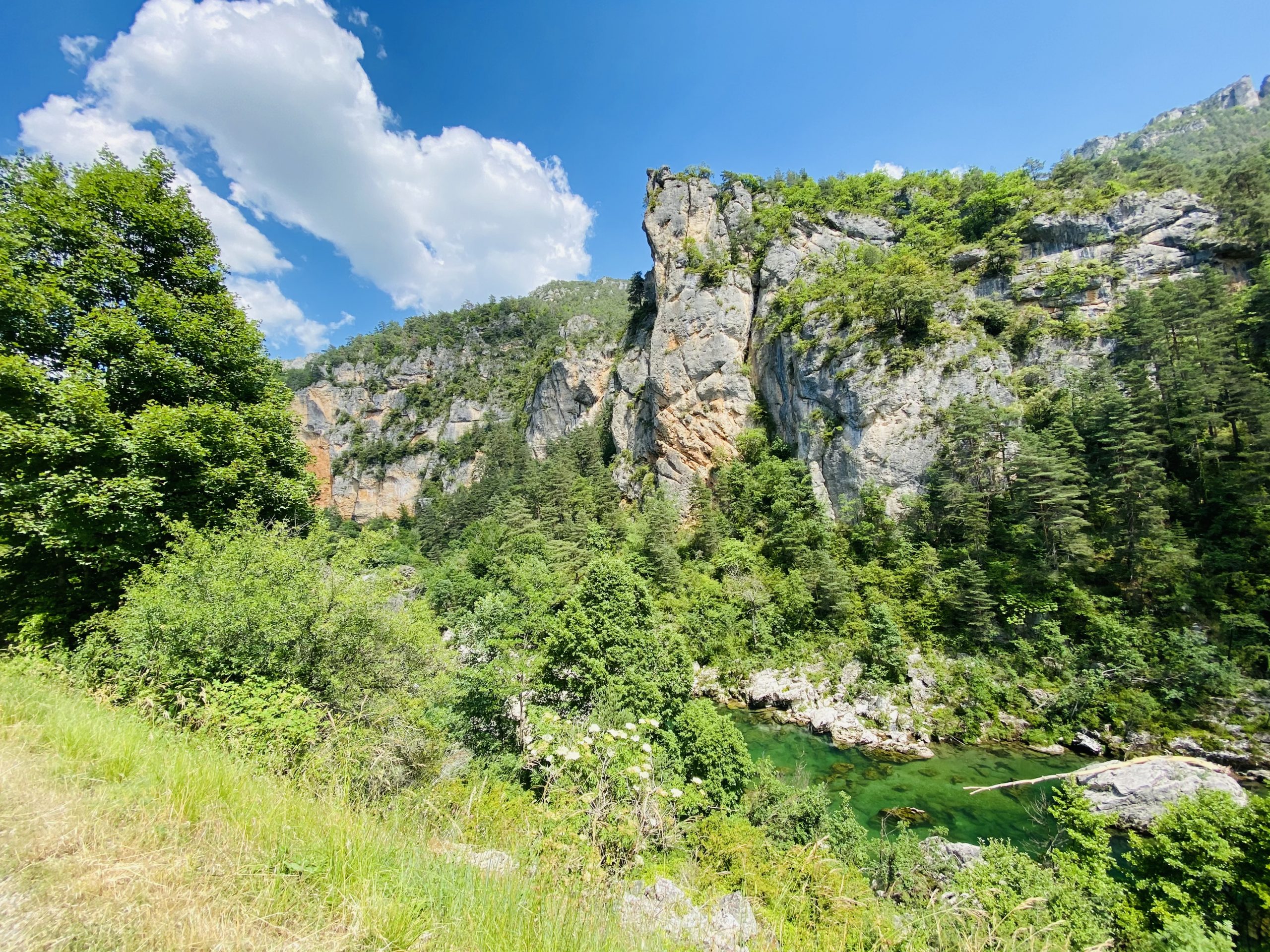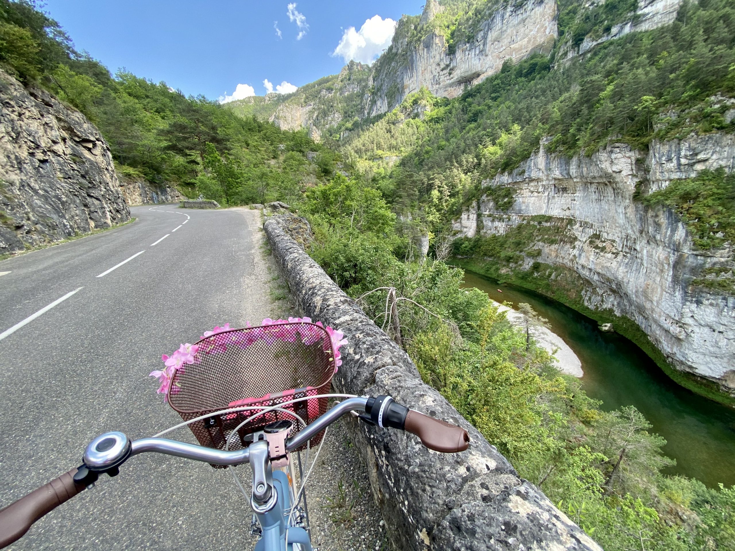 A estrada escolhida seguia as margens do Tarn. A paisagem da natureza, vilarejos, estrada, rio, paisagismo fez com que pedalasse os últimos 30 quilômetros boquiaberta.