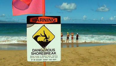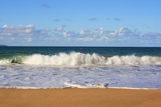 Depois desci até a praia para analisar o tamanho da encrenca (como se já não bastasse uma) De acordo com as dicas o mar é outro inimigo dos atletas; tem muita rebentação podendo dificultar a entrada e saída da água.